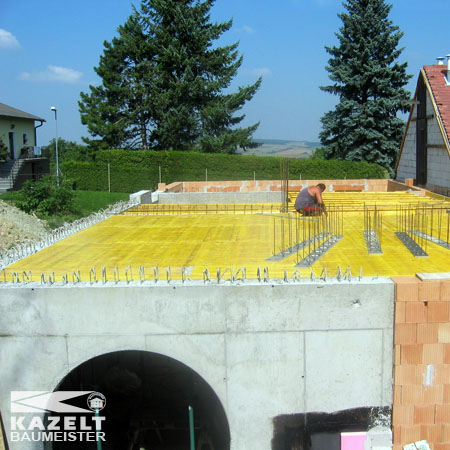 Es folgt die Schalung und Bewehrung für Decke und Stiege.